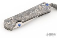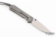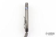 This Large Sebenza 31 from Chris Reeve Knives features a tumble finished blade with dual anodized thumb studs and notched thumbrest. The handle is comprised of a bead blasted and laser engraved titanium frame over a single barrel spacer with a matching bead blasted titanium tip up clip. Includes original box, leather sheath, paperwork and accessories. Has a couple light scuffs, otherwise excellent condition. Maker's card dated January 15, 2025.