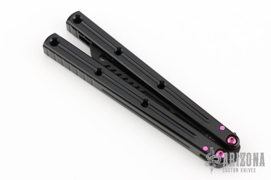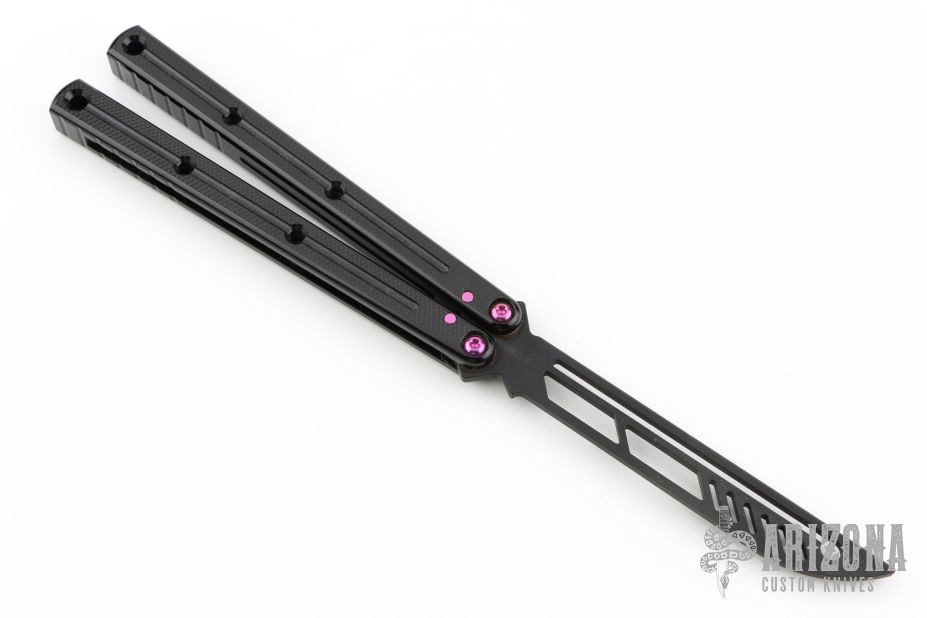 The highly anticipated Krake Raken balisong butterfly knife has all of the precision-engineered smoothness of a Squid balisong trainer, revised with a beautifully finished live blade. The handles have rounded edges and deep texturing to provide a sure grip, the zen pins have been upgraded with harder steel to preserve the gap between the handles, and the bushing/washer system has been redesigned to further reduce—or even negate—blade play. Its a butterfly knife that will eat up drops, cut like a champ, and flip like nobody's business.