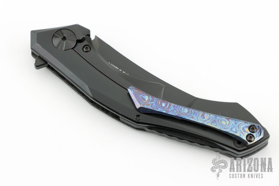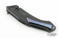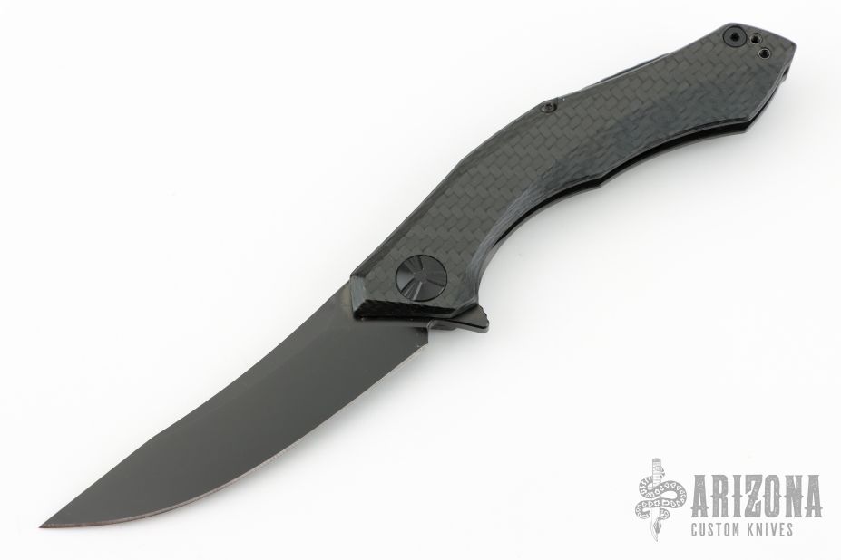 This 0462 Sinkevich Design flipper by Zero Tolerance features a black upswept blade with flipper and swedge. The handle has a carbon fiber and black titanium frame, black aluminum backspacer and a tip up reversible clip. Nice detent, lockup and blade seating, rides on bearings. Has stainless steel lockface insert and overtravel stop, ceramic detent ball. S/N 0421. Excellent condition. Comes with original box and papers. The listing includes the attached Timascus clip and an extra Rival carbon fiber clip. Original clip is not included.