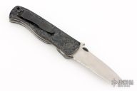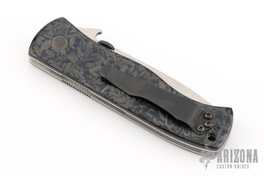 This CQC-7 from Emerson features a silver partially serrated chisel ground tanto blade with notched thumbrest, thumbhole and wave feature. The handle has shred carbon fiber scales, titanium liners, matching backspacer, and a tip up black stainless steel clip. Nice detent, lockup and blade seating. #2396 and dated 2011. Comes with original box, papers, black G10 covers and backspacer. Excellent condition.