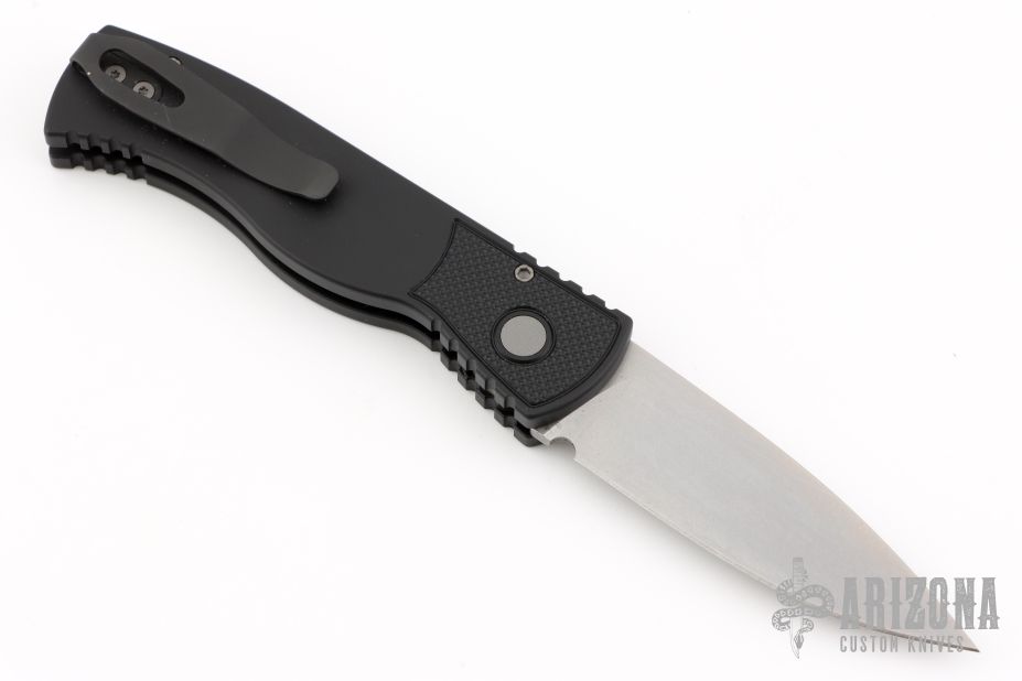 This TR-2 Side Opening Auto from Pro-Tech Knives has a stonewashed blade. The handle is black aluminum with black coated stainless steel tip up clip. Comes with original box and papers. Has a couple light scuffs, otherwise excellent condition.
