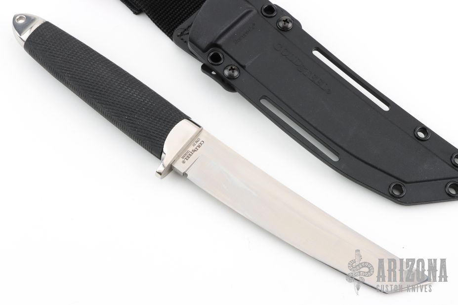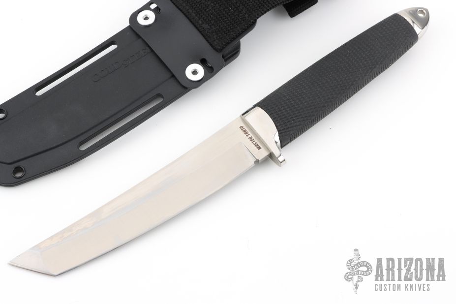 This Master Tanto by Cold Steel features a satin finished blade with .189" blade stock and 1.147" blade depth, hidden tang construction. Guard and pommel are stainless with a textured Kraton grip. Comes with black Secure-Ex sheath and original box. Excellent condition.
