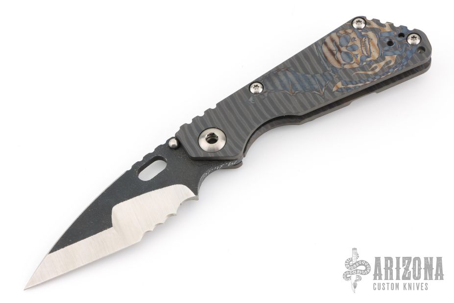 In 1988, he began making specialized knives for use by the military. This turned out to be fortunate turn of events, both for Mick and for the knife using world at large. Mick’s approach was to not get burdened by the weight of past designs. He started with a tabula rasa, a clean slate, informed only by his own experiences and knowledge of what a soldier needed in a knife. The knives he made didn’t look like the hunter-inspired knives seen in most PXs; instead they were almost brutish in their functionality: beefy, solid, and with unbreakable ¼” stock full tangs. These knives were the first indication of his innovative approach: in addition to their utilitarian design, the knives carried a subdued finish and subdued sheaths. No one carrying a Strider knife was going to be spotted because of sunlight glinting off of polished steel or a glossy leather sheath. Soldiers, policemen, and other men going into harm’s way couldn’t buy them fast enough. Mick sampled some good ideas, but made them great. For instance, he was not the first to wrap a knife handle with paracord, but he was the first to do it in a way that was tough enough for sustained infantry use. His knife line grew over the following years to include different varieties of fixed blades, all distinctive and many with specialized uses. But constant in all of them was a disregard for convention, and a desire to try new ideas. An example of this was the Ajax – it featured a very wide blade surface clearly designed to inflict damage. It drew on the weapons carried by Roman legionnaires, yet was modern and usable in the 21stCentury battlefield. Mick also worked on his technical skills, always striving to become better at the physical craft. At the 2002 Blade Show, a group of the best tactical knifemakers in the country decided to compete with each other to produce the most innovative and interesting fixed “battle blade” at the show. Mick’s entry, an incredible integral knife made out of ½” titanium stock with a zippered composite blade, gorgeous handles, and integral guard was the unanimous winner, and effectively retired the competition.