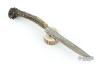 William (Bill) Wales Scagel (1873-1963). Considered to be the foremost pioneer in 20th century custom knifemaking. Scagel began making knives in 1910 while working at lumber camps throughout Michigan and Canada. From 1920 through 1929, Scagel sold his knives through Abercrombie & Fitch of New York and their subsidiaries such as Von Lengerke & Antoine. Scagel made hunting knives, machetes, and axes for the expeditions of the Smithsonian Institution. Scagel made a variety of knives throughout his career including bowie knives, fighting knives, and pocketknives. Scagel used a half stag and half leather stacked washer assembly in his knife handles that became his trademark style. One such Scagel knife provided the influence for Bo Randall to start making his own knives. In 1937, Randall witnessed someone using a Scagel knife to scrape paint off of a boat without damaging the edge of the blade. Randall bought the knife and in the years that followed Scagel became a mentor to Randall, influencing many of his designs. Every knife Scagel made was completely by hand and without modern tools such as a grinder or buffer, his shop was powered off a gasoline engine from an automobile and as a result, the quantity of knives he produced over his 50 years of knifemaking is very low. He made his last knife in 1962, the year before he died. Twenty-three years later he was inducted into the Blade Magazine Cutlery Hall of Fame in 1989. In 1996, Scagel was inducted into the American Bladesmith Society Hall of Fame.