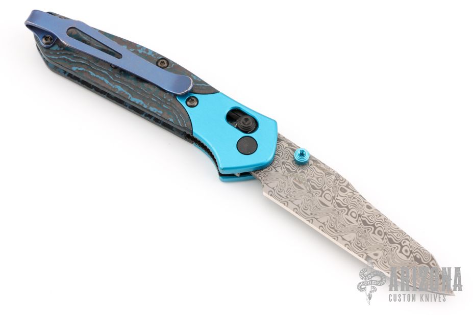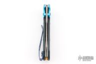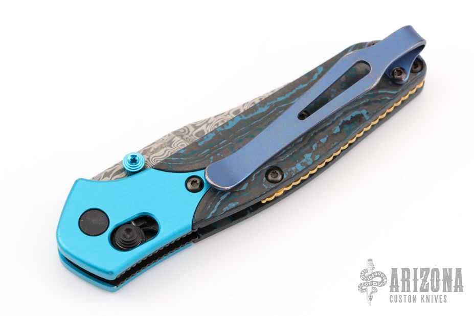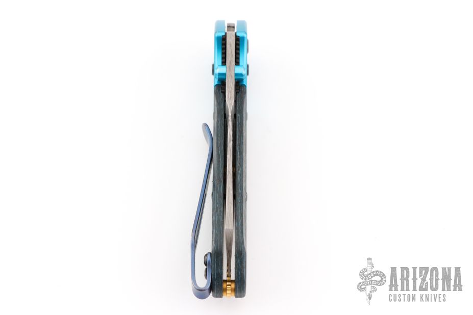 - "Arctic Storm" Fat Carbon carbon fiber handle scales with aqua-anodized bolsters and a gold-plated floating backspacer.