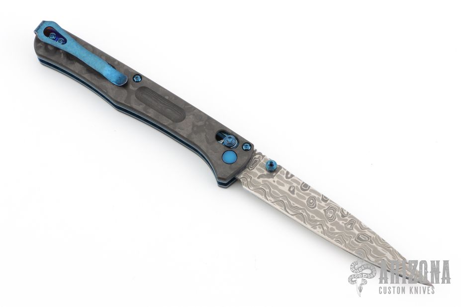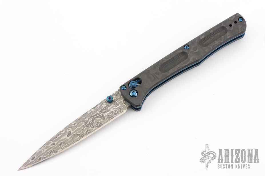 The Benchmade 417 Fact is a fast, slim spear-point folder built for serious use. This Gold Class version takes the Fact to the next level with FatCarbon Handles and Intrepid damascus blade. A throwback to classic Italian stilettos, the Fact is a slim and easy-to-carry knife that can handle real-world use. The combo of a slim, ergonomic handle and a pointy, spear-point blade make for an exceptional EDC knife.