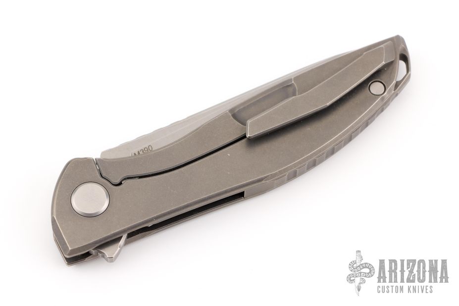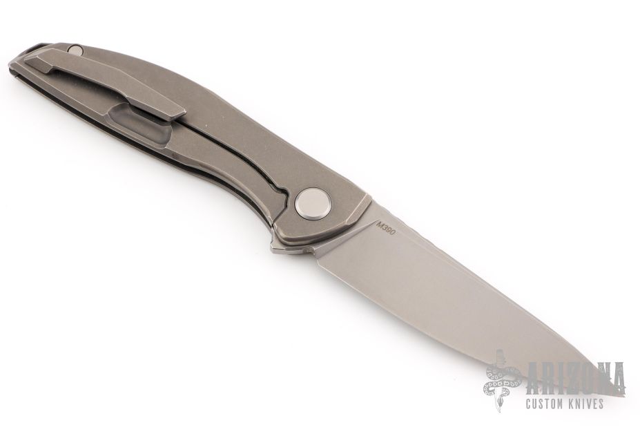 This Neon Zero by Shirogorov Knives features a stonewashed blade with notched thumbrest and flipper. The handle has a stonewashed titanium frame with matching tip up clip. Nice detent, lockup and blade seating. Has MRBS. Comes with original box and card. Has some light scuffs and scratches, great condition otherwise.