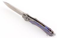 The Quasar was designed as a medium-sized utility pocket knife that balances comfortable ergonomics with unique, curved visuals. Its sweeping lines and exotic handle materials create a futuristic and utilitarian design, while maintaining durability and practicality for daily use. The prominent blade profile ensures exceptional cutting and slicing performance, and the creatively contoured handle provides a secure and natural grip, making it equally suited for precision tasks and hard use.