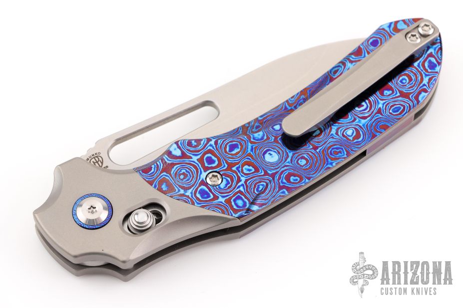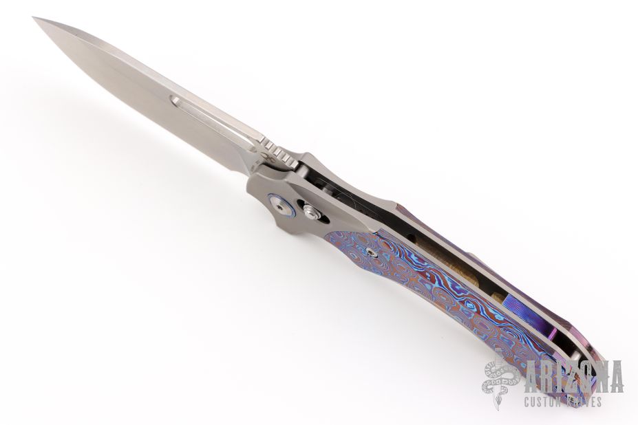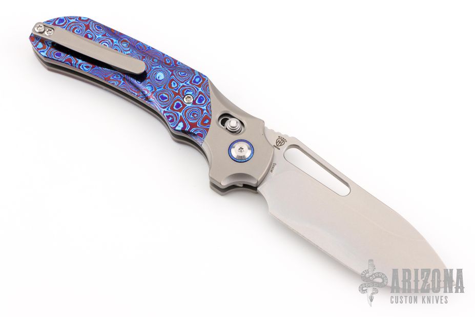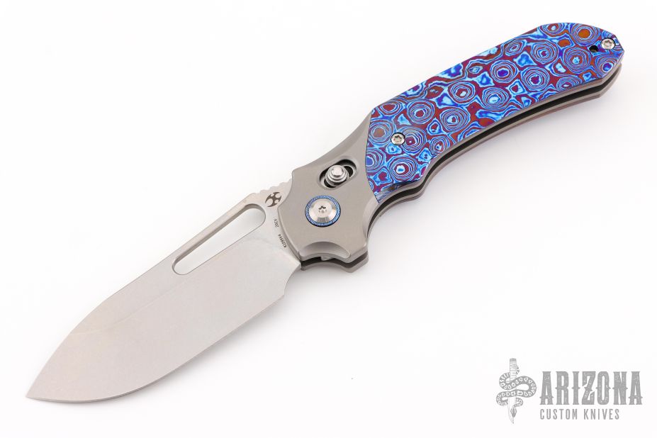 The Quasar was designed as a medium-sized utility pocket knife that balances comfortable ergonomics with unique, curved visuals. Its sweeping lines and exotic handle materials create a futuristic and utilitarian design, while maintaining durability and practicality for daily use. The prominent blade profile ensures exceptional cutting and slicing performance, and the creatively contoured handle provides a secure and natural grip, making it equally suited for precision tasks and hard use.