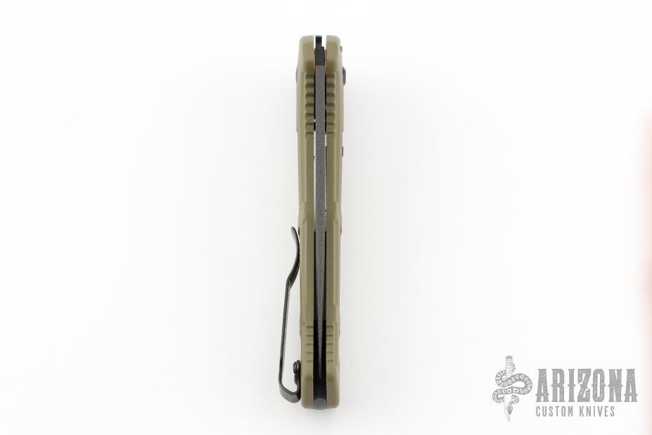 An explosive design, bound to take the battlefield by storm. The 9070SBK-1 Claymore is a slender push-button powerhouse, packed full of hidden features and inspired by one of the most notorious directional mines. Incorporating this air-hardening tool steel to Benchmade’s portfolio of premium materials, the Claymore blade has been crafted from CPM-D2 to provide ample toughness and edge retention. Manufactured in the USA, the Claymore has set the standard for closed break strength, making this Benchmade's toughest folder to date. Comes with original box, papers, and drawstring pouch. Excellent condition.
