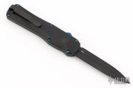 This Autocrat model has a black G-10 handle and a black finished dagger blade. The Autocrat is the first OTF offering from Benchmade featuring a milled composite G-10 handle. It is a high performance tactical auto, defined by both speed and style. The ergonomic handle successfully blends the durability and wear resistance of G-10, with the flashy style of blue sapphire titanium coated hardware and components. Item comes complete with a reversible deep-carry pocket clip. Features: Spine-fire release OTF automatic action for rapid, one-hand deployment. Reversible tip-down pocket clip allows for left or right side ambidextrous carry. Premium CPM-S30V double-edge dagger blade provides excellent strength and edge retention. Comes with original box and papers. Excellent condition.