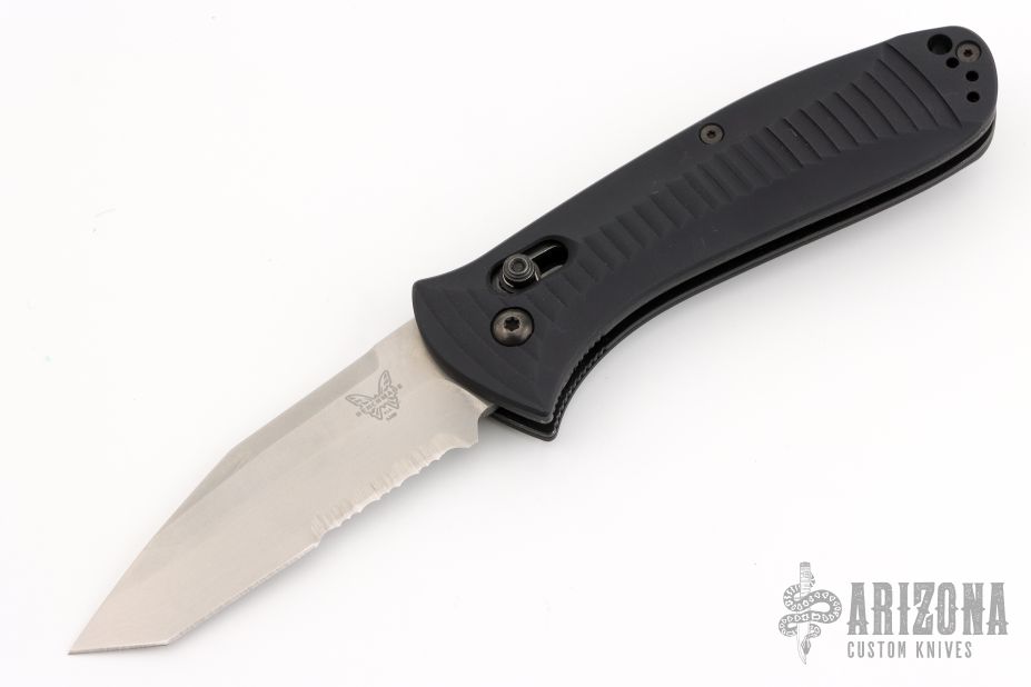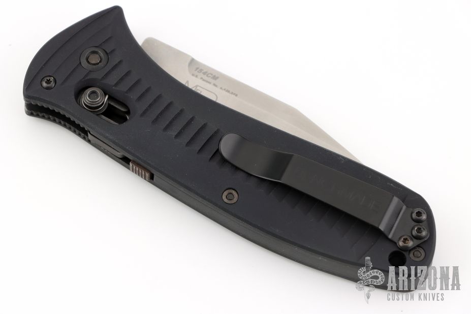 Mel Pardue design. Ambidextrous Auto Axis Pull Button Release - allows for automatic opening with either hand by pulling either Axis button back (buttons on each side of the handle). Integrated spine mount safety. Bi-directional machined handle grip for a superior sure grip. Includes original box. Excellent condition.