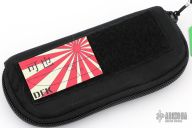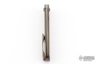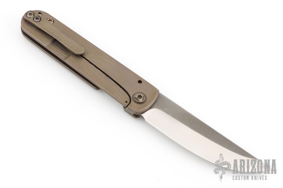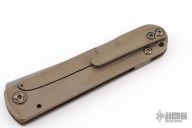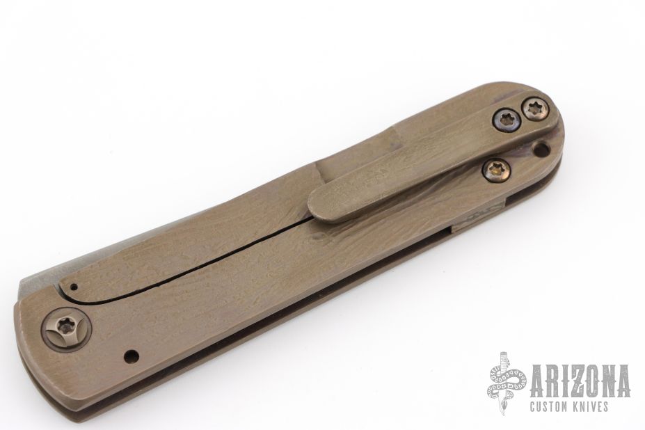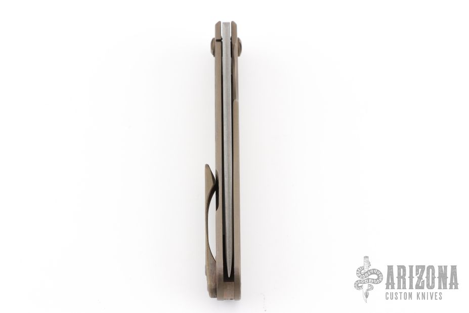 This knife by Dan Fairly features a drop point blade with satin finished grinds and  tumbled flats with a single fuller.  The handle features a textured and anodized titanium frame, backspacer and tip up pocket clip.  Includes a COA and a padded zippered case. Excellent condition.