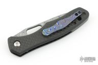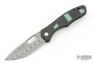 This Custom Mini Spoke linerlock from Gerry McGinnis features an Odins Eye Damasteel blade with thumbhole and notched thumbrest. The handle a carbon fiber front scale with black/grey Formica inlay, orange peel finished titanium liner, zircuti tip up clip and a zirconium backspacer. Blade is centered when closed and locks up with no movement. #134 and dated 7/23/25. New from maker at the 2025 Pacific Northwest Custom Invitational. Comes with a zippered case.
