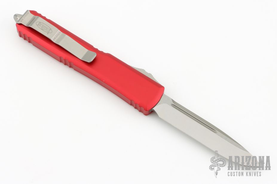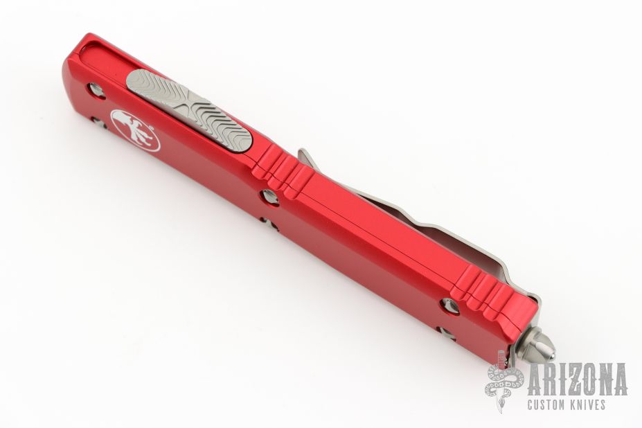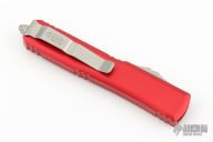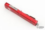 This Ultratech OTF automatic features a satin finished S/E drop point blade with a standard edge and a red frame. Stainless steel clip. Glass breaker. Serial number 278235 and dated 04/2023. Excellent Condition. Comes with original box and papers.