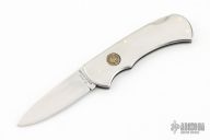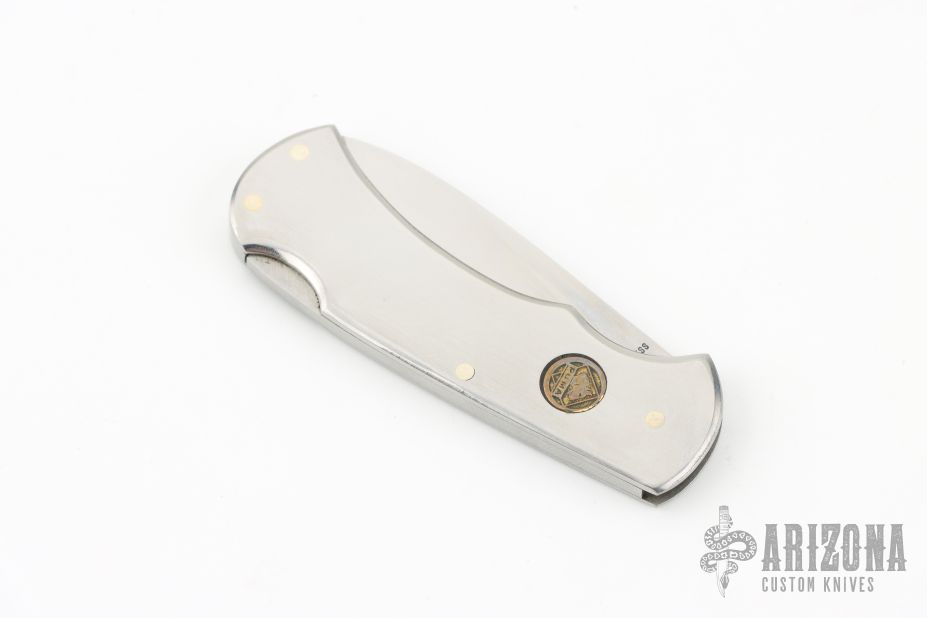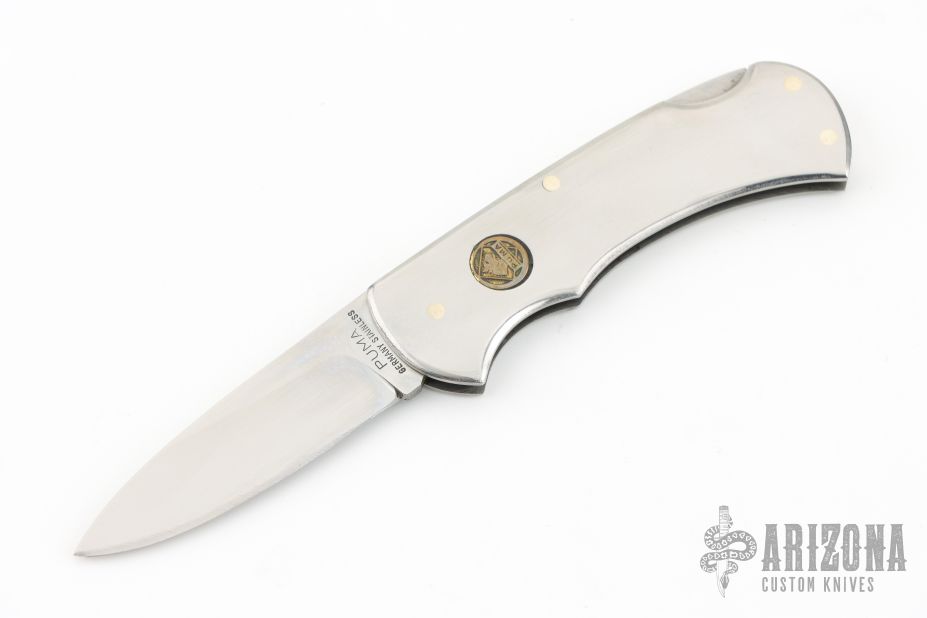 This Puma Gent lockback features a satin finished blade with a nail nick. The handle has stainless covers with escutcheon, and a stainless steel backspacer.  Includes a leather pocket sheath. Has some scuffs and scratches, great condition otherwise.