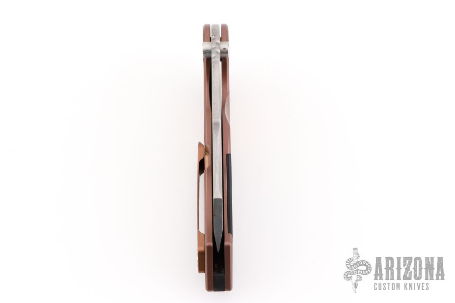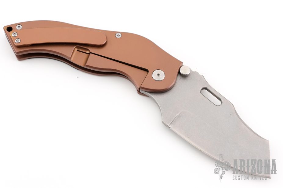 This DMF by Sniper Bladeworks features a stonewashed blade with notched thumbrest and thumbhole. The handle has an anodized titanium frame with matching tip up clip and a carbon fiber inlay. Comes with original packaging. Excellent condition.