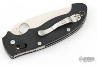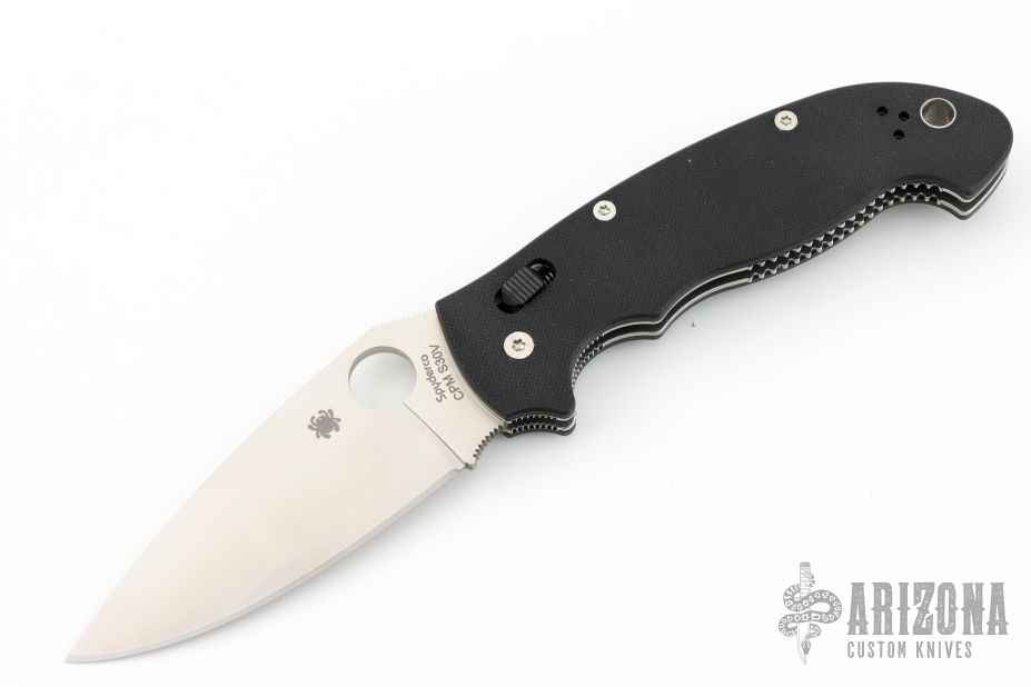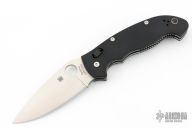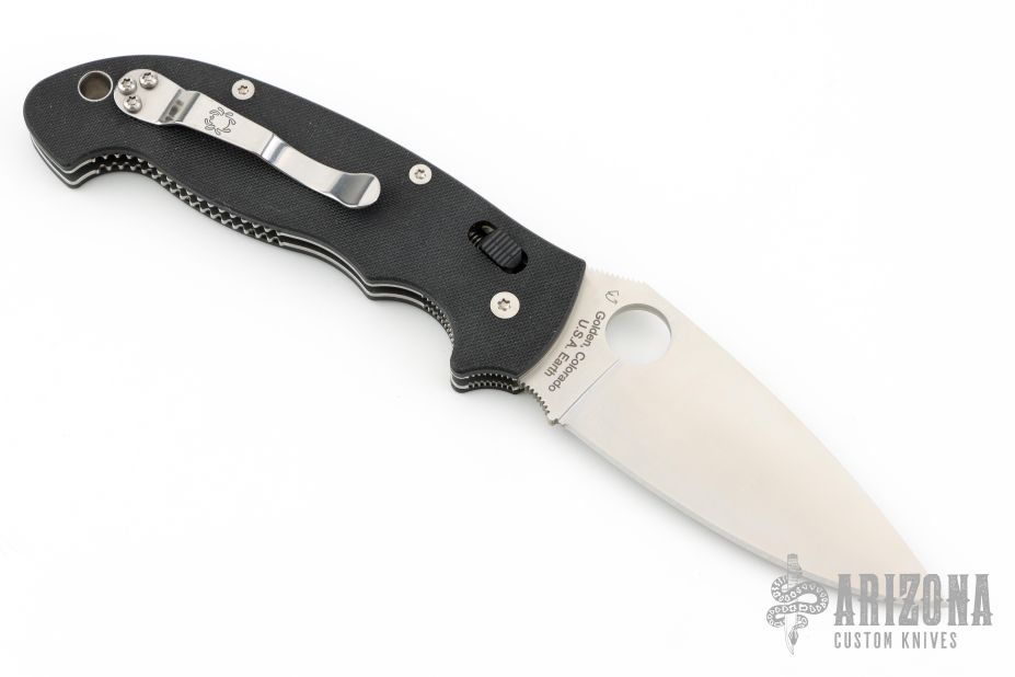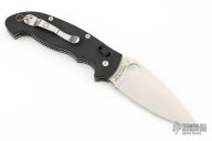 This Manix 2 has a satin finished CMP S30V stainless steel drop/ spear point blade with thumb hole and notched thumb rest. Handle is black G10 over stainless steel liners, 2-way reversible tip up stainless steel clip, and lanyard tube pin. Excellent condition. Comes with original box and paperwork.