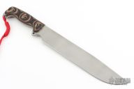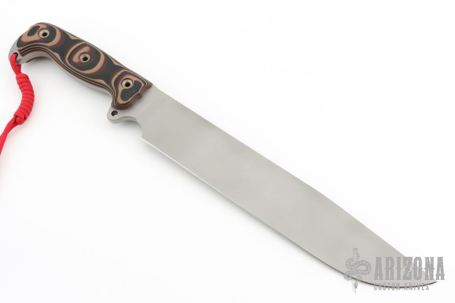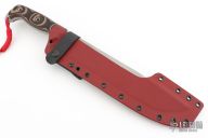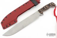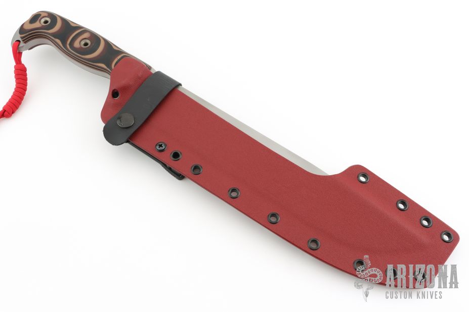 This Straight Handle Battle Mistress from the Busse Combat Knife Company features a bead blast finished blade, .305" blade stock, 1.864" blade depth, full tang construction with black/tan/red G-10 scales. Excellent condition. Comes with a custom Kydex sheath by BuyBrown