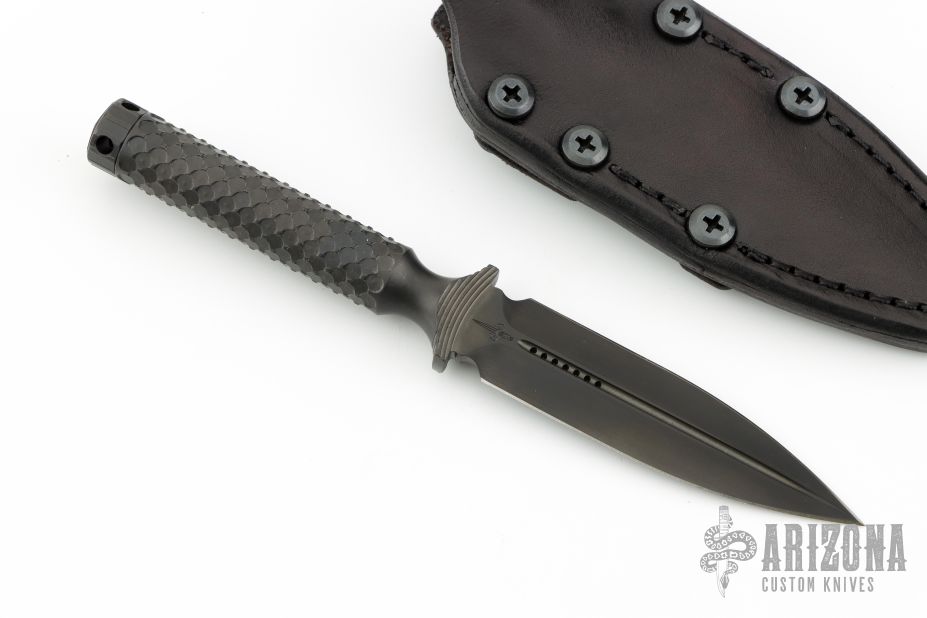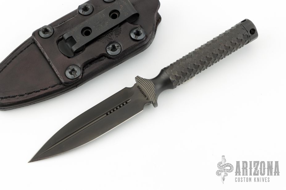 ADO - M Double Edge DLC Double Vapor Blast Finish Matching Titanium Endcap Chattanooga Leatherworks Sheath