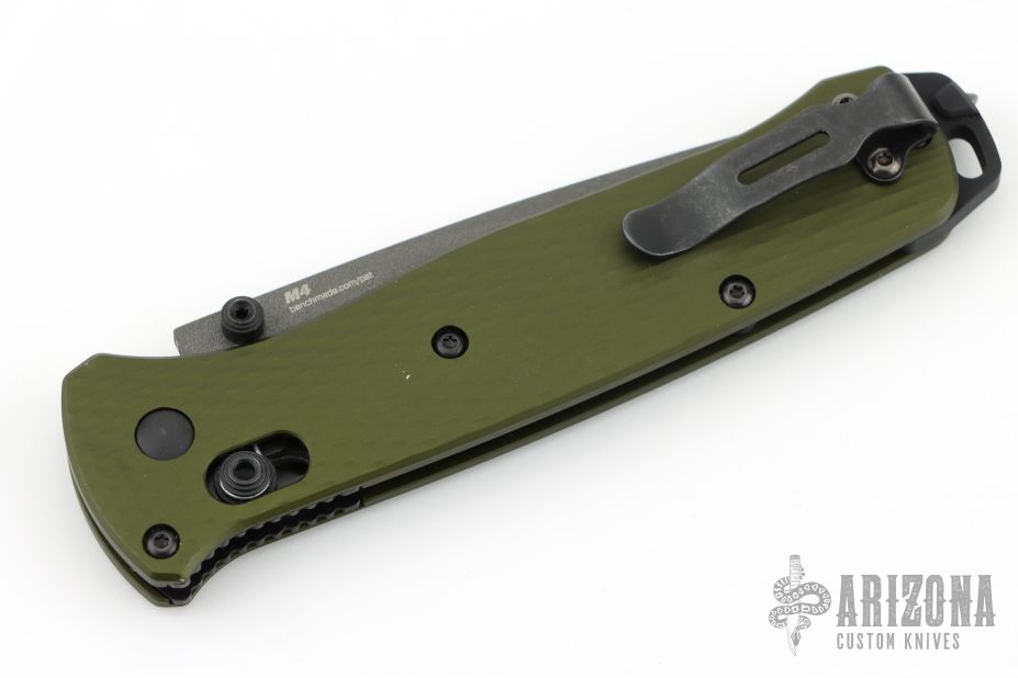 Benchmade is changing the tactical game once again, with the lightweight and nimble 537 Bailout Series. This slim, pocket friendly folder weighs in at just over 2 ounces, with a green aluminum handle and a gray Cerakote finished tanto blade. Tough CPM-M4 steel provides a tough cutting edge with excellent retention.