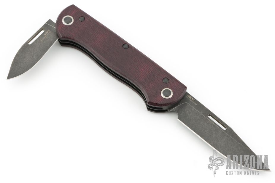 - Clip point 3" blade and drop point 2" blade made from CPM S90V premium steel.