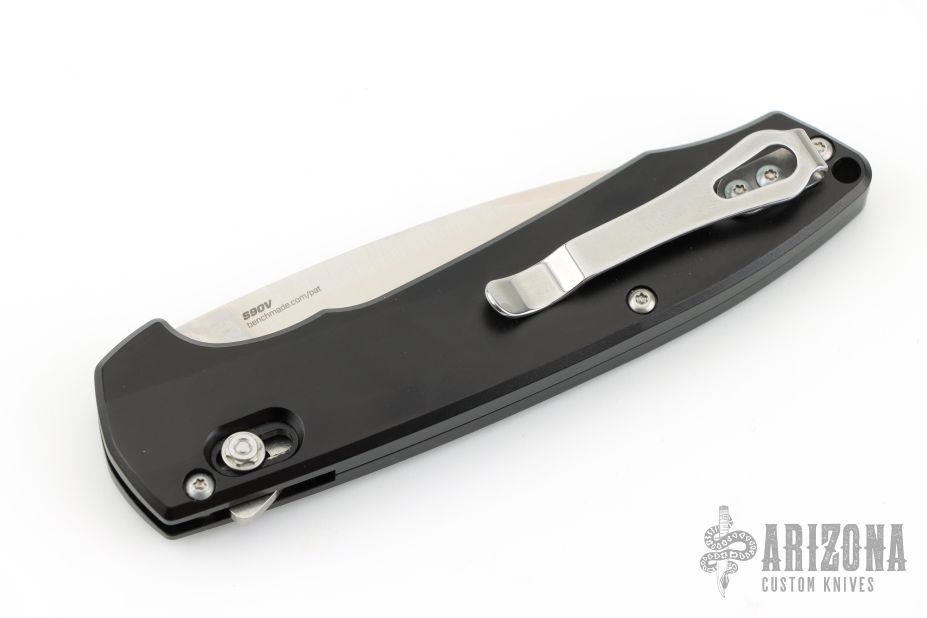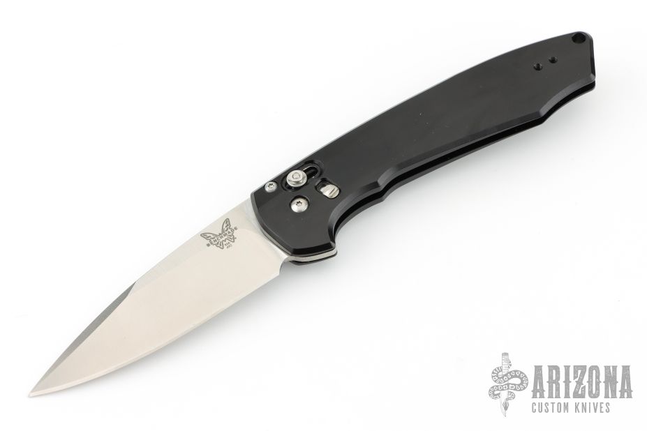 Benchmade's Arcane 490 is the first AXIS-Assist knife to utilize a flipper opener! Designed with everyday carry comfort in mind, it has a thin, lightweight 7075-T6 aluminum handle with a deep carry, reversible pocket clip. For an added measure of protection, Benchmade has included a front-mounted safety lock. The Arcane 490 has a stonewash finished blade with a plain cutting edge. Includes the original box, pouch and papers. Excellent Condition.