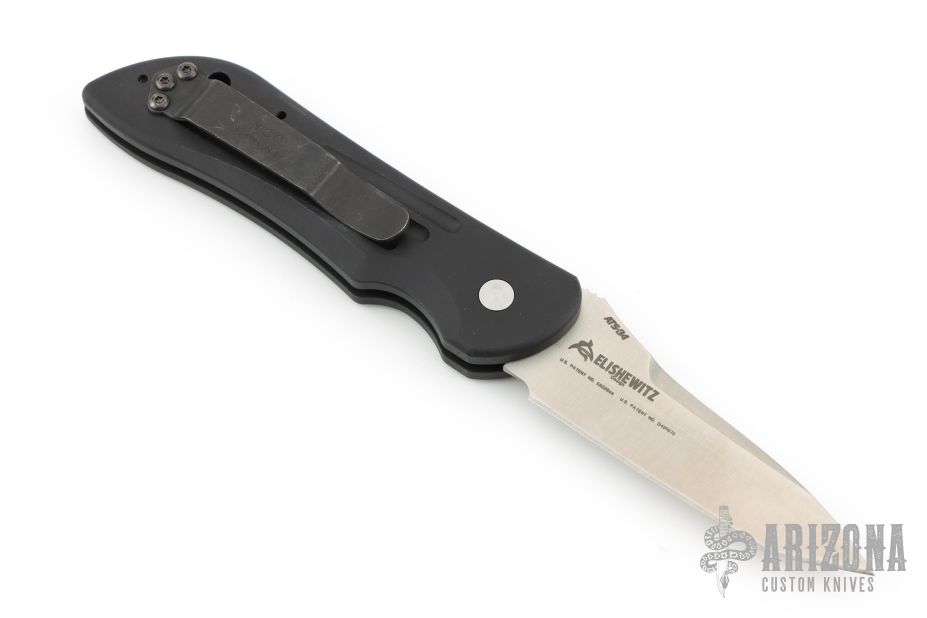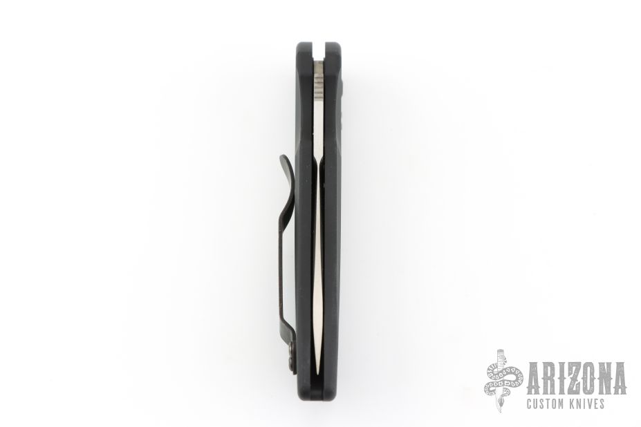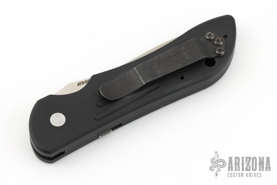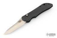 This 9500 Mini Auto-Stryker from Benchmade features a satin tanto style blade with notched thumbrest. The handle is comprised of black anodized and machined aluminum with black coated stainless steel tip up clip and lanyard hole in pommel. Push button release and sliding safety. Comes with original box and papers. Excellent condition.