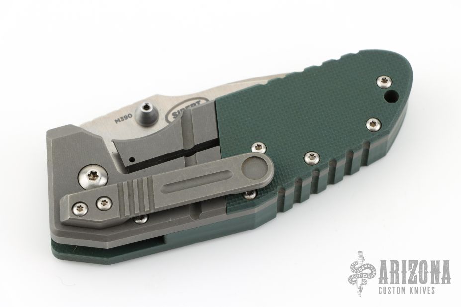 A stout titanium monolock designed by Shane Sibert. Overbuilt? Absolutely! Titanium mono-lock mechanism Tactical drop-point blade with ambidextrous thumb-stud opener M390 super steel blade (60-62HRC) Titanium and G10 handles with a titanium tip-down carry clip. Comes with original drawstring pouch. Has some scuffs and scratches, great condition otherwise.