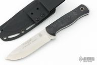 This Fieldcraft Fixed Blade was designed by Brothers of Bushcraft for TOPS knives. It features a two-tone blade with satin grinds with a notched thumbrest. The handle is comprised of black G10 over full tang construction. The handle features a bow drill divot on both scales and the exposed tang pommel features a divot ground into the tang to allow the scraping of a fire steel without having to leave the blade edge exposed. Comes with a Kydex sheath with belt clip. Has a couple light scratches, otherwise great condition.