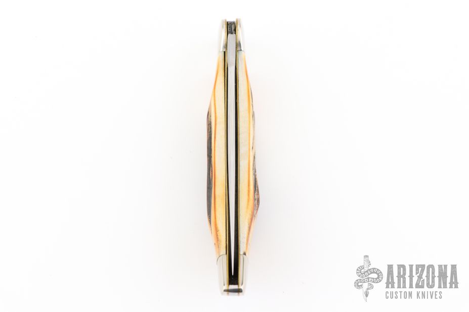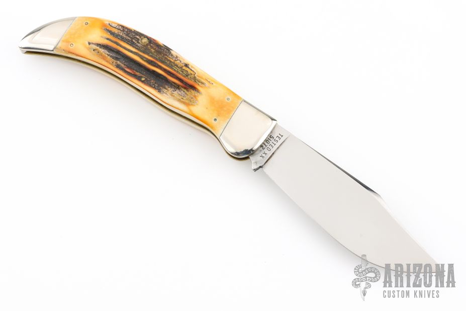 This Bulldog 51072 from Case Knives features a clip point mirror polished blade with nail nick. The handle nickel silver bolsters and butt cap with stag covers over brass liners and stainless steel back spring. Includes a wooden display box and COA. Only 750 of this pattern have been produced with the "CASE XX" marking. Has some light scratches, otherwise excellent condition.