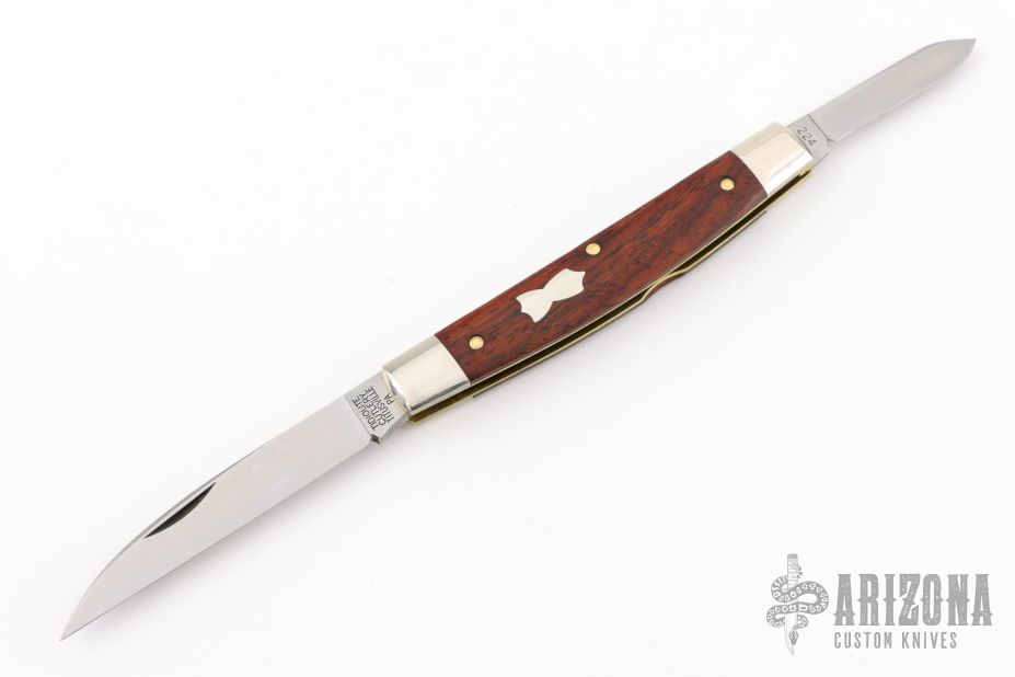The GEC #13 Clerk is a perfect example a true American craftsmanship. This traditional slipjoint features beautiful Cocobolo Wood along with a main wharncliffe blade and a secondary pen blade. Get your hands on the Clerk and show off your American pride in style!