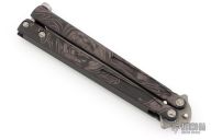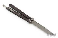 This Tachyon III balisong by Microtech Knives has a Apycalyptic finished blade with false top edge. The handles are integral black finished aluminum with spring latch and tip up stainless steel clip. The handle has been given a custom "Ghosted Reaper" laser etched design. Dated 11/2016, s/n 01202. Excellent condition.