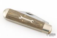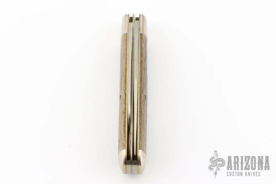 This slipjoint from Tidioute features 2 satin finished blades with nail nicks. The handle has nickel silver bolsters, wood covers with brass liners, and steel springs. Includes original tube, paper, and button. Excellent condition.