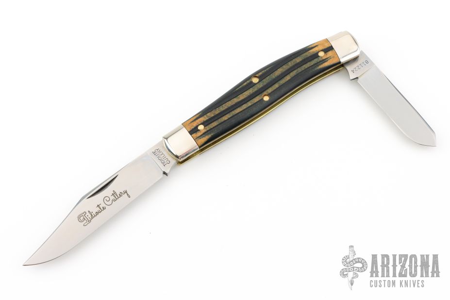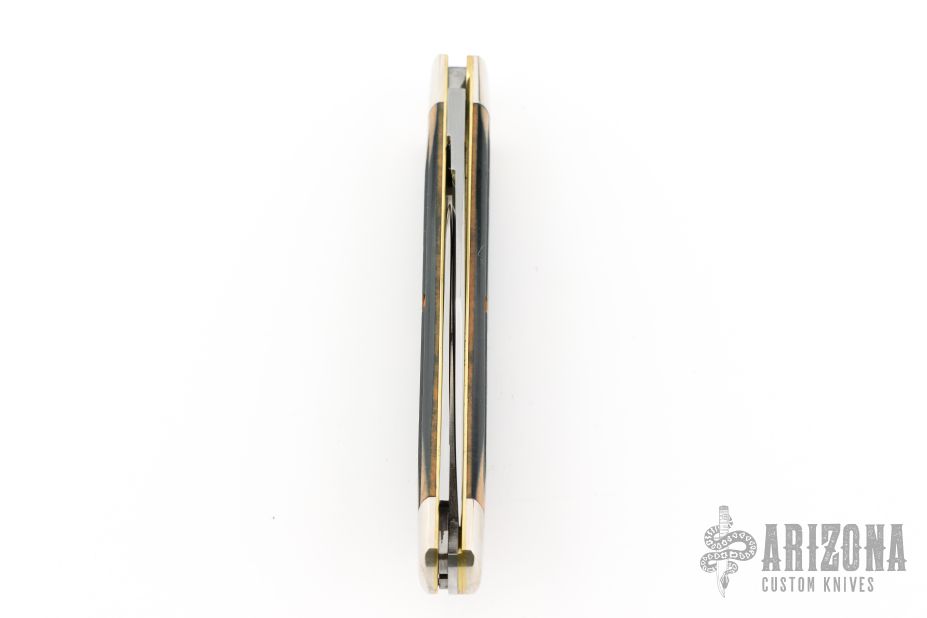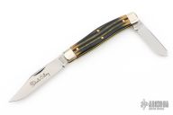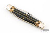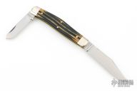 This slipjoint from Great Eastern Cutlery features two satin finished blades with nail nicks. The handle has nickel silver bolsters, micarta covers with brass liners, and steel springs. Includes original tube, button, and wax paper. Excellent condition.