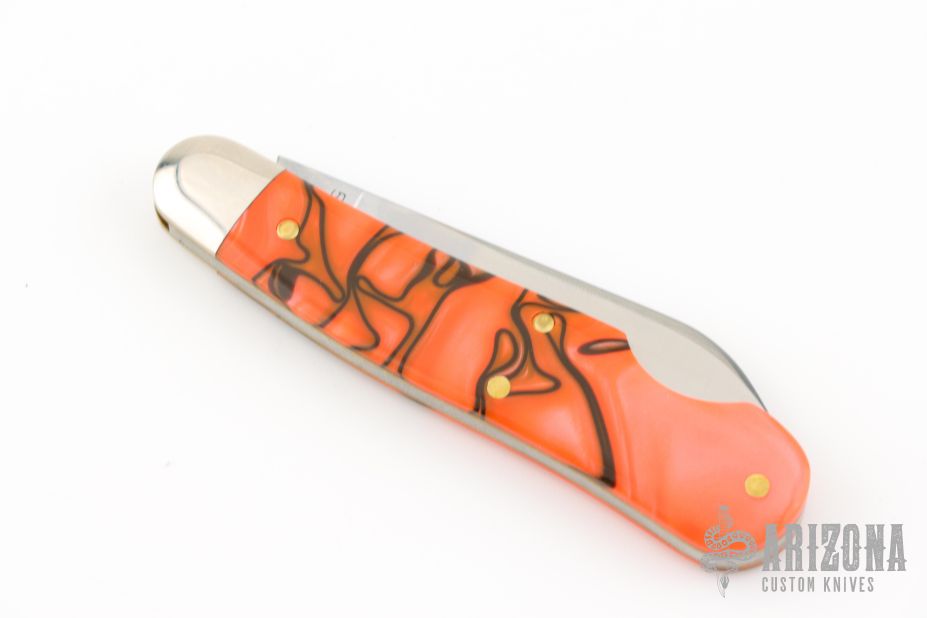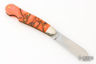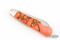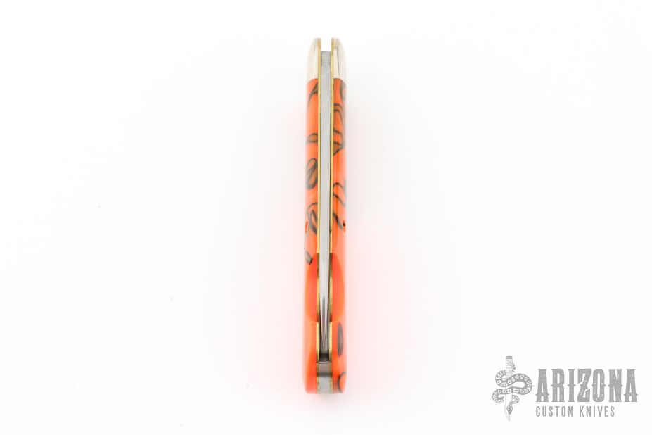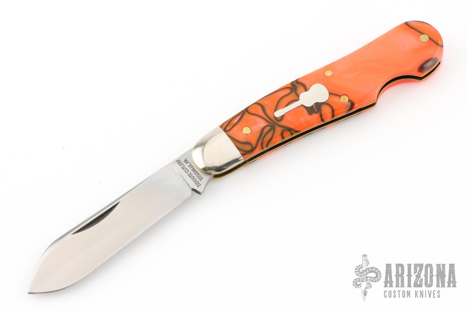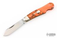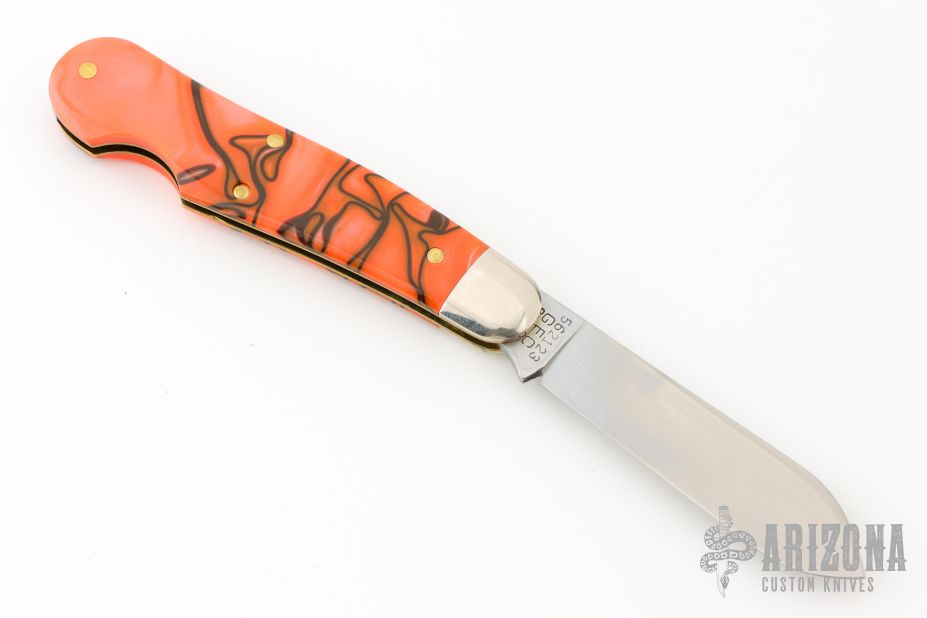 This slipjoint by Great Eastern Cutlery features a satin finished clip point blade with a nail nick. The handle has nickel silver bolsters, acrylic overs. Comes with original tube and wax paper. Excellent condition.