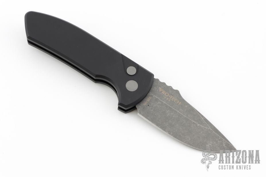 The Left Handed Short Bladed Rockeye, or SBR for short, is a compact version of the outstanding full sized Rockeye Auto. Both knives are designed by Marine Corps knife designer Les George, who’s ergonomic hard use knives have been faithfully translated to automatic versions by Pro-Tech. The SBR features a compact design, with a 2.5″ blade that’s built for a multitude of cutting tasks. A pocket milled spine adds extra grip and depth to the design. The SBR features solid black hard coat anodized handles, blasted hardware, black DLC coated deep carry clip, and a stonewashed blade. Comes with original box, pouch, and papers. Excellent condition.