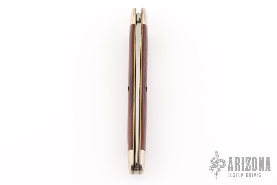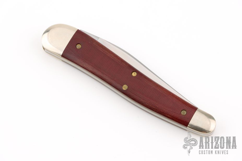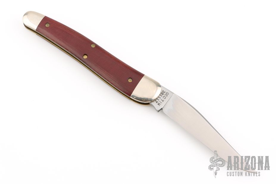 This 38 Special by Great Eastern Cutlery features a satin finished blade with nail nick. The handle has nickel silver bolsters and brass liners, red linen micarta covers. Comes with original packaging. Excellent condition.