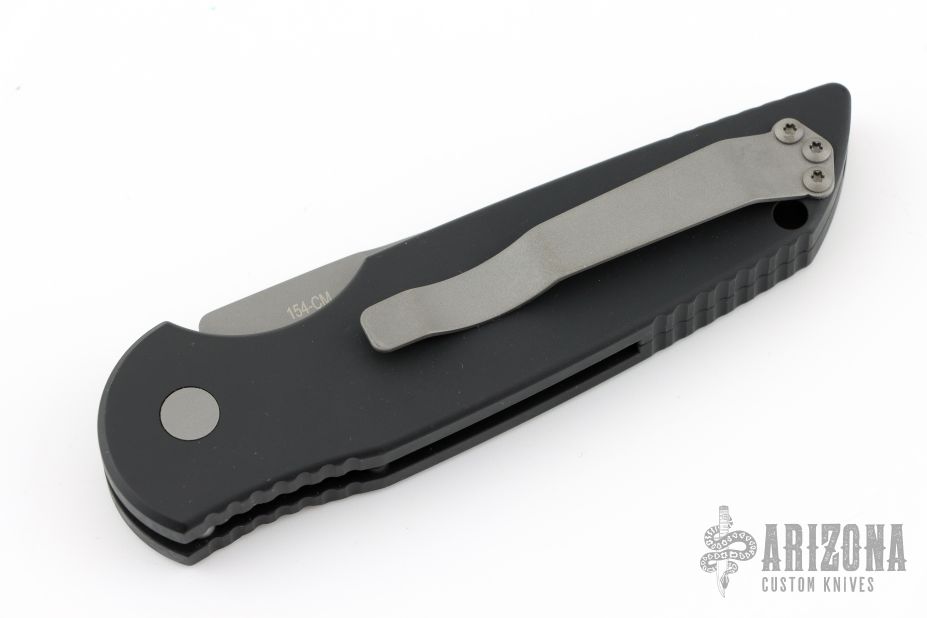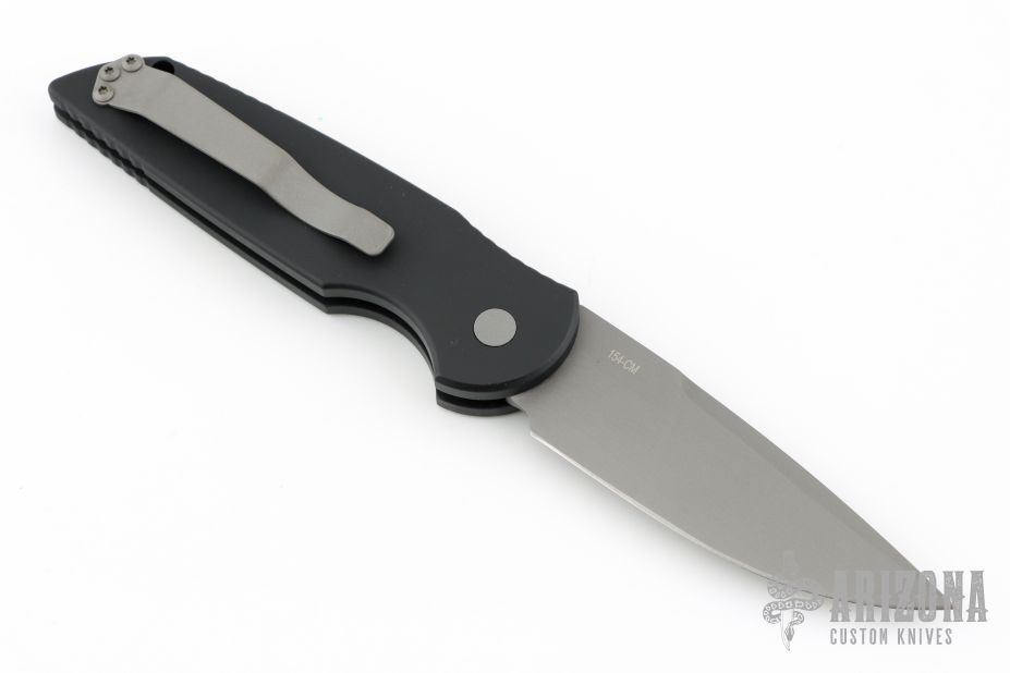 This Pro-Tech TR-3 coil-spring automatic features a 154-CM bead blast finished blade and special black anodized aluminum frame. Grey rubber non-slip inlays for supreme grip. Bead blast finished stainless clip. Comes with original box, nylon, and papers. Excellent condition.
