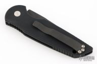 This TR-3 has a black finish blade with a plain edge, and a black aluminum handle with carbon fiber inlay on front. Black stainless steel clip. Comes with original box and papers. Excellent condition.