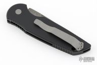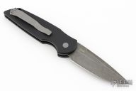 This Tactical Response TR-3 by Pro-Tech black anodized aluminum body, which provides good traction and looks great. The blade is acid wash finished 154-CM stainless steel with a plain cutting edge. The TR-3 is a knife that won't let you down. It fires hard, locks up like a rock, and feels great in hand. The slim design sits comfortably for tip-up pocket carry. Bead blast finished firing button, adding a unique and awesome flare to the piece. Sterling Silver Skull in handle. Comes with original box and papers. Excellent condition. #15