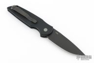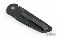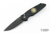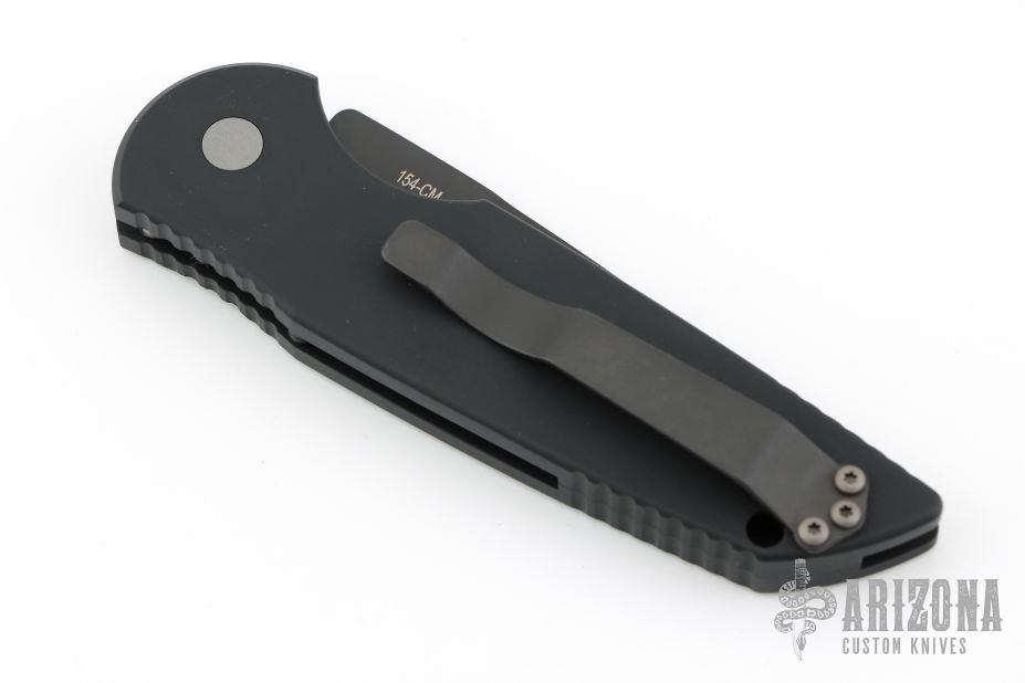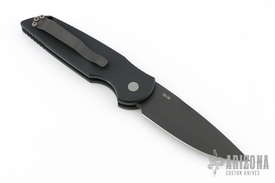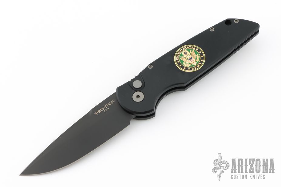 This Tactical Response TR-3 features a black anodized aluminum body, which provides good traction and looks great. Army logo inset in the handle. The blade is black finished 154-CM stainless steel with a plain cutting edge. The TR-3 is a knife that won't let you down. It fires hard, locks up like a rock, and feels great in hand. The slim design sits comfortably for tip-up pocket carry. Bead blast pivot and push button. Comes with original box, pouch, and papers. Excellent condition.