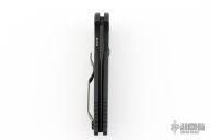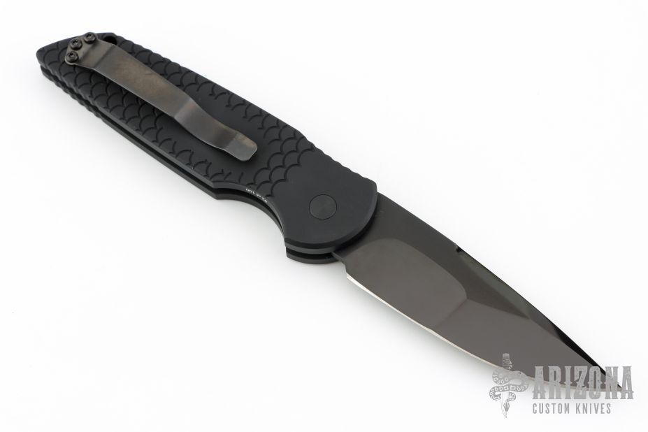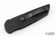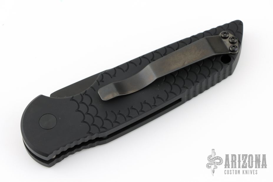 This Tactical Response TR-3 X1 Operator Series features a "Fish Scale" milled, black anodized aluminum body, which provides good traction and looks great. The blade is black DLC finished 154-CM stainless steel with a hand ground compound grind. The TR-3 is a knife that won't let you down. It fires hard, locks up like a rock, and feels great in hand. The slim design sits comfortably for tip-up pocket carry. Comes with original box, pouch and papers. Excellent condition.