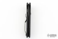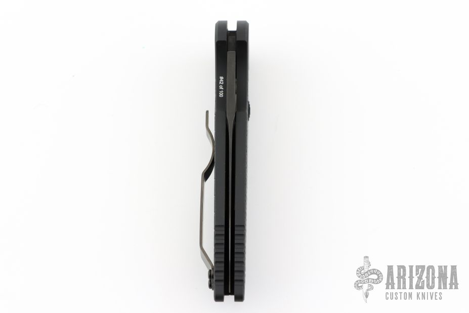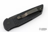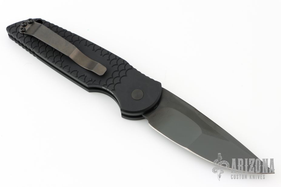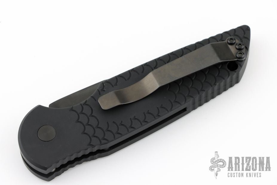 This Tactical Response TR-3 X1 Operator Series features a "Fish Scale" milled, black anodized aluminum body, which provides good traction and looks great. The blade is black DLC finished 154-CM stainless steel with a hand ground compound grind. The TR-3 is a knife that won't let you down. It fires hard, locks up like a rock, and feels great in hand. The slim design sits comfortably for tip-up pocket carry. Comes with original box, pouch and papers. Excellent condition.