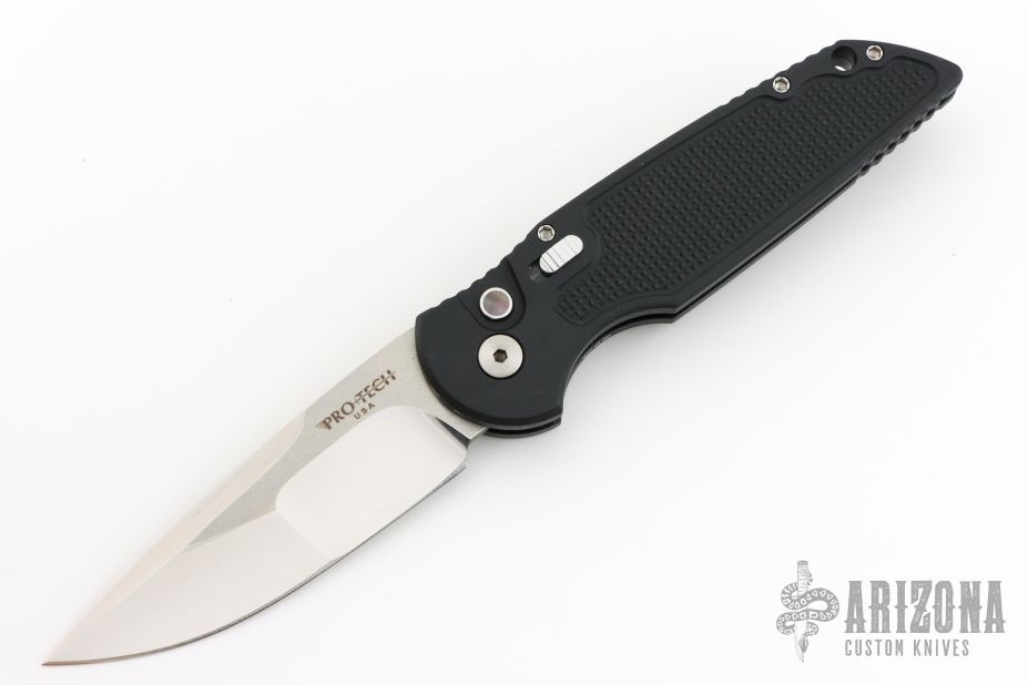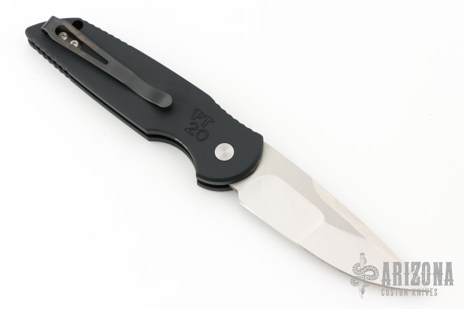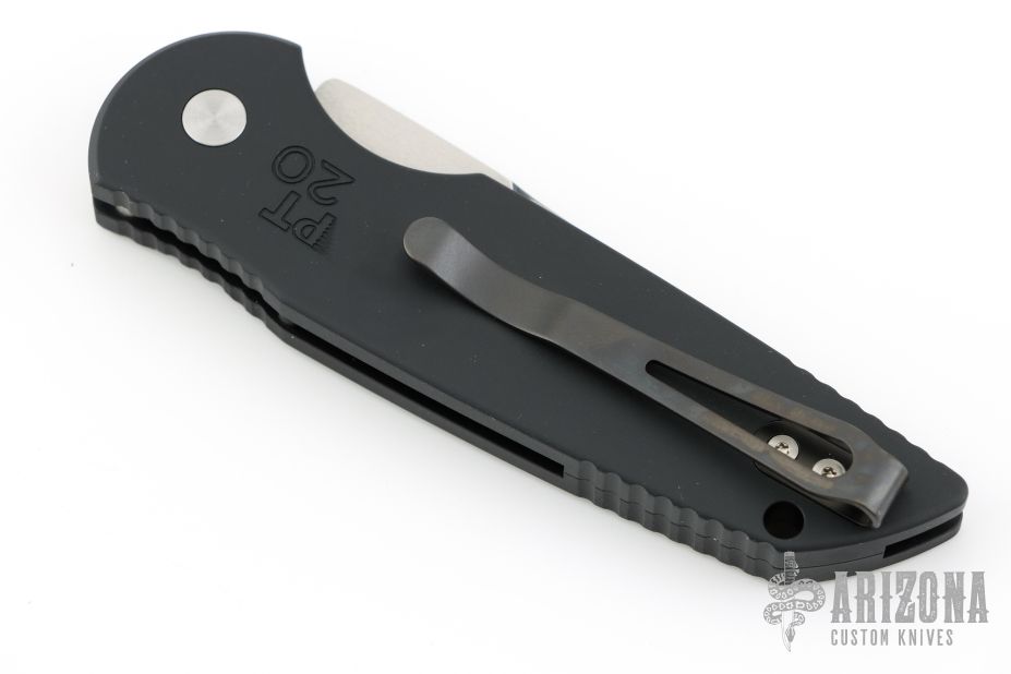 Protech is commemorating 20 years in business with a special Elite limited edition series of knives. This TR-3 model features a knurl textured handle with a mother of pearl push button and a "PT 20" engraving on back that commemorates 20 years of Protech quality. Item includes a compound grind, mirror finished S35VN steel blade and a deep carry pocket clip. This Tactical Response TR-3 features a black textured aluminum body, which provides good traction and looks great. The TR-3 is a responsive automatic knife that won't let you down. It fires hard, locks up like a rock, and feels great in hand. The slim design sits comfortably for tip-up pocket carry.