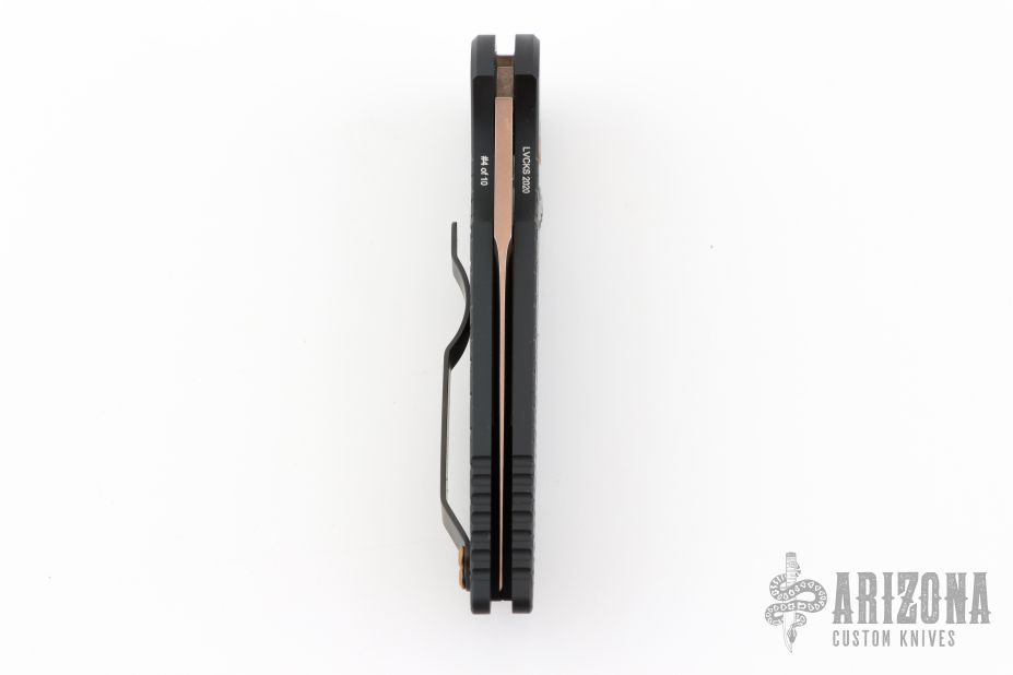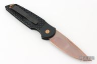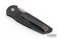 This TR-3 by Pro-Tech Knives features a fish scale textured handle with a bronzed push button and hardware. Item includes a tumbled and rose gold coated blade and a black tip up stainless steel clip. This Tactical Response TR-3 features a black textured aluminum body, which provides good traction and looks great. The TR-3 is a responsive automatic knife that won't let you down. It fires hard, locks up like a rock, and feels great in hand. The slim design sits comfortably for tip-up pocket carry. #4 of 10. From the LVCKS 2020.