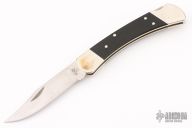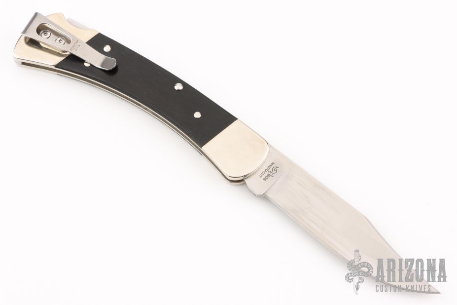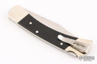 The Buck 110 Slim Elite is an all new, slimmer variation of the 110 Folding Hunter. This knife features a satin finish, BOS heat treated, MagnaCut steel, clip point blade. The handle is made of ebony inlays with nickel silver bolsters. This slimmed-down 110 handle is ¼” thinner than the standard 110. It also has a tumble-polished, deep carry pocket clip. Only 1,000 pieces of this unique knife were expertly built as part of the 2025 Project Stealth, Run #010, and it comes with a Certificate of Authenticity. Comes with original box and papers. Excellent condition.