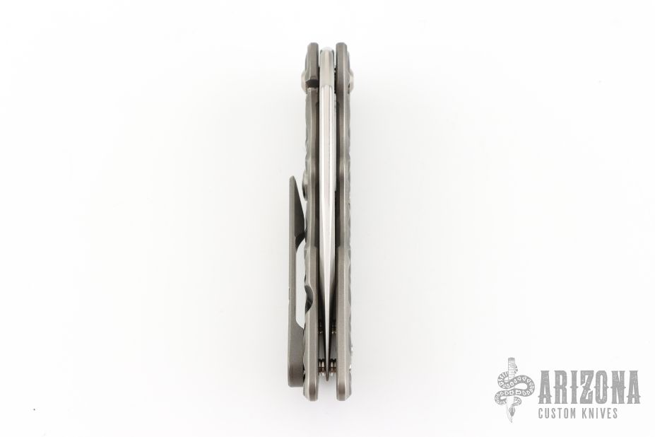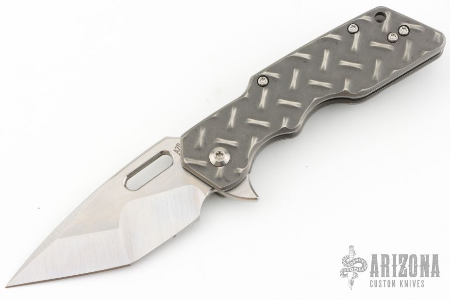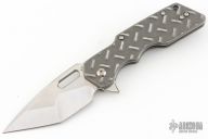 This Medium Mark I Flipper by A2D Mercantile features a hand ground satin finished blade with thumbhole and flipper. The handle has stonewashed titanium treadplate frame, tip up titanium clip, satin lockbar stabilizer. Rides on bearings, nice detent, lockup and blade seating. Comes with a zippered case and COA dogtag dated November 2024. Excellent condition.