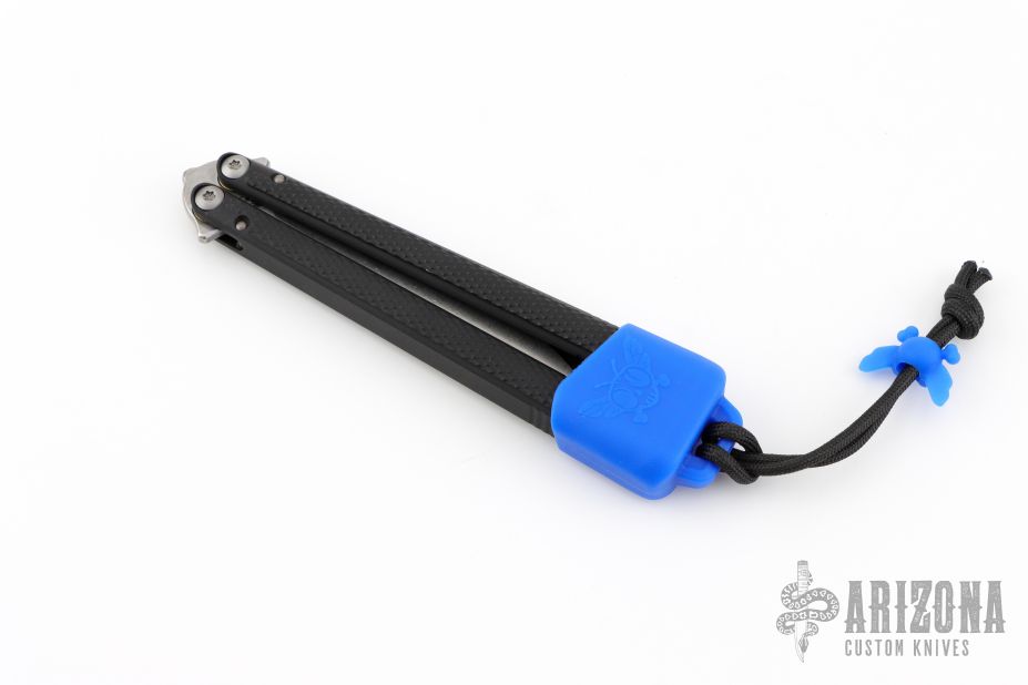 The Talisong Z comes with a blue Bali-Boot that was developed as a safe and innovative way to carry your latchless balisong. It is soft and flexible, and won't mar up the handles. It is paired with a paracord lanyard and blue silicone fly bead. The lanyard can be threaded through a belt and used as a static cord, or you can just slip the entire thing into your pocket.