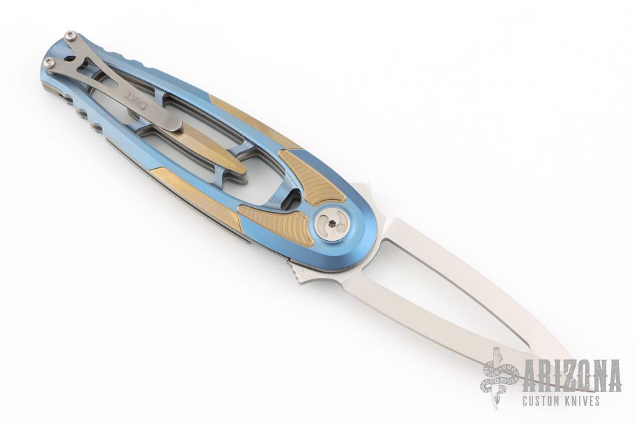 This limited-edition Dew Hara Hirin folding knife (1 of only 500 made) combines Japanese artistry with Italian craftsmanship. Built in Maniago, Italy by LionSteel, it features a 3.39" Bohler M390 spear point blade with satin finish and a two-tone 6Al4V titanium handle. The IKBS ball bearing pivot ensures smooth flipper deployment, and a liner lock secures the blade. Designed by Dew Hara, son of renowned knife maker Koji Hara, the Hirin blends precision, style, and performance. Includes leather knife pouch. Excellent Condition.